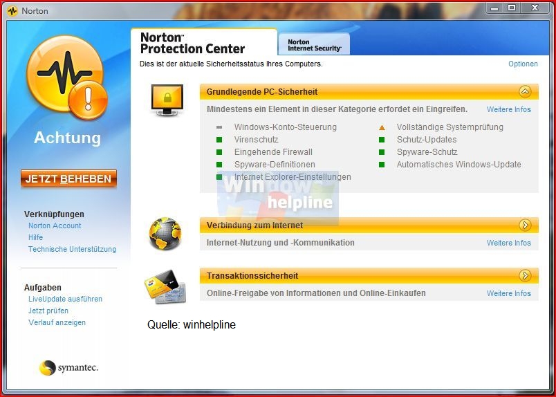 Ich habe schon stundenlang in dem Programm herum gesucht und auch auf der Seite von Symantec und über Google, aber leider nichts gefunden.