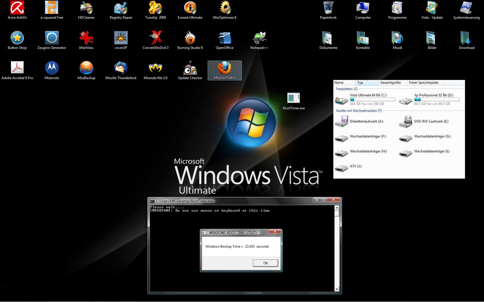 schnell zu machen wie Vista Ultimate 64 Bit (Bootzeit bis ins www ca.25 sec.) bei Vista mit den Programmen aus [1]