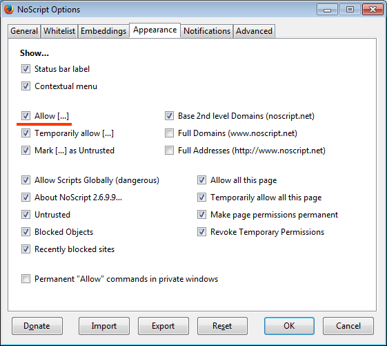 Seit geraumer Zeit kann ich zwar im Menü von NoScript den Hacken bei "Aussehen" und "...erlauben" setzen, aber ich kann anschließend der aktuellen Seite nicht mehr erlauben, die Scrips für länger zu speichern.