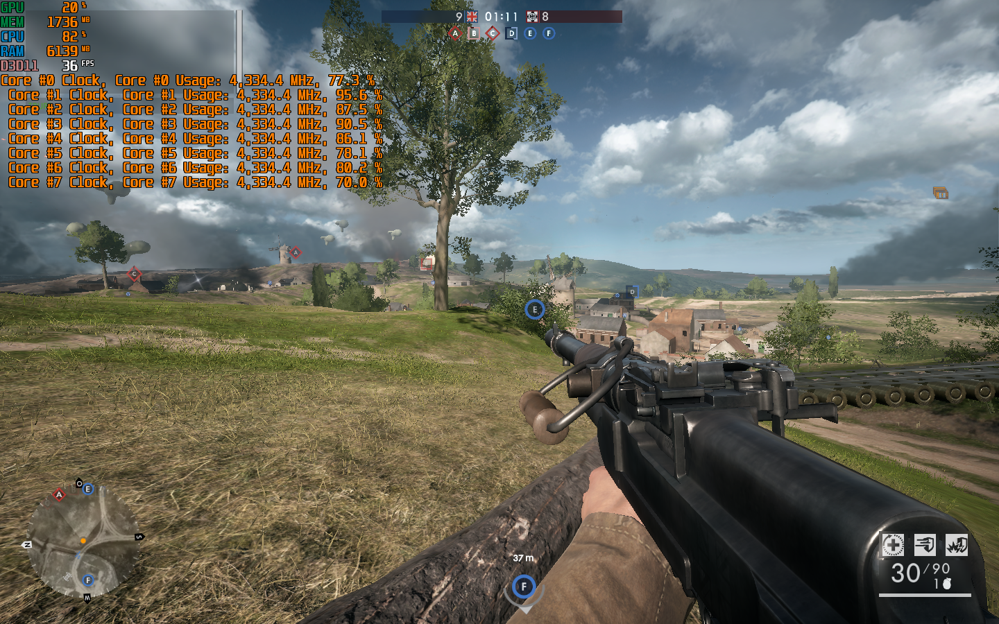 Erreicht die CPU ihren Nominaltakt würde ich auf die Füllung vom RAM schauen.