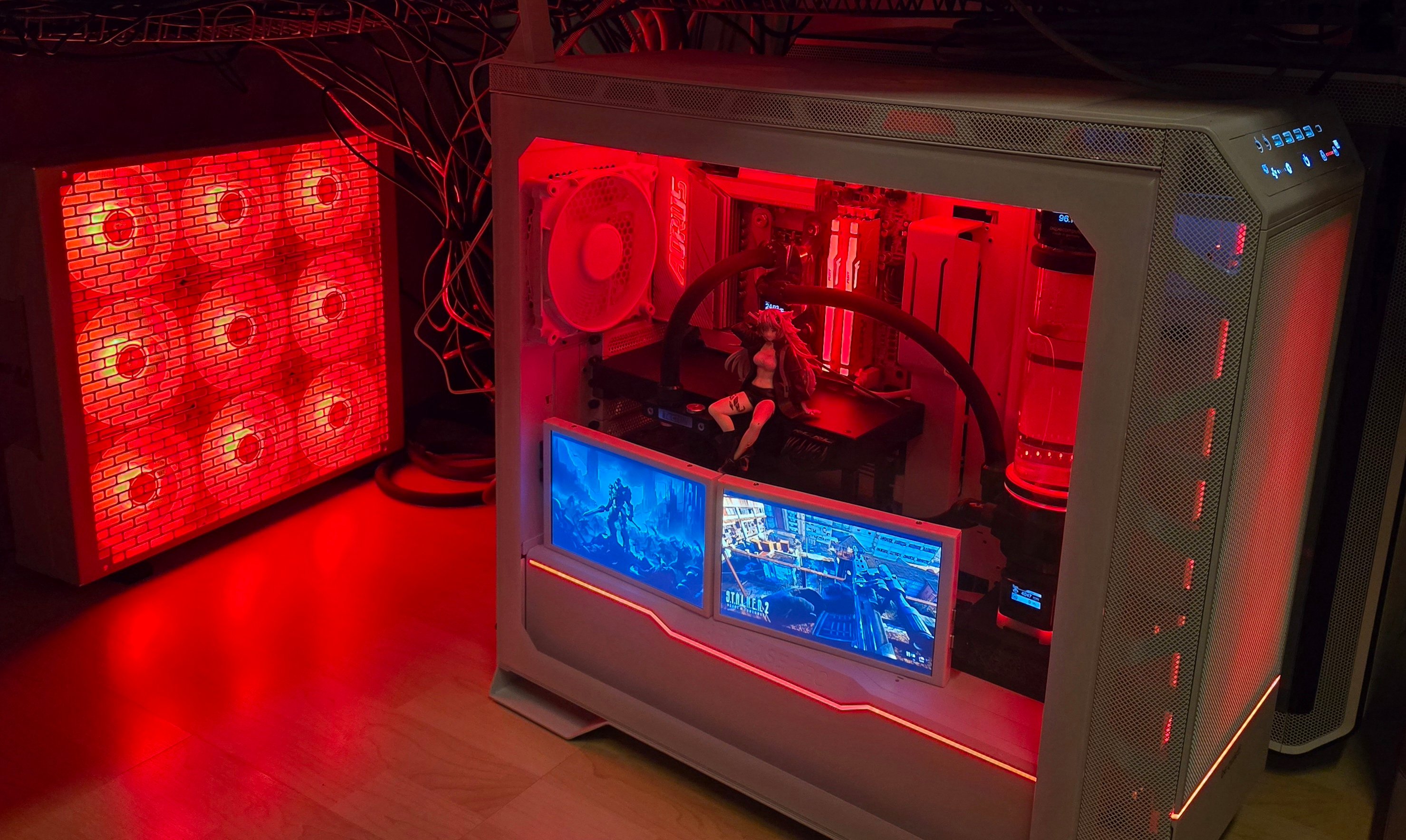 Ursprünglich war es erst mein Zweitsystem, Hauptsystem war mit einem Ryzen 5 2600, Vega 64 usw. in nem Fractal Meshify C Mini (luftgekühlt), da hatte ich über die Zeit dann noch andere Grafikkarten drin und den dann Anfang 2023 verkauft.