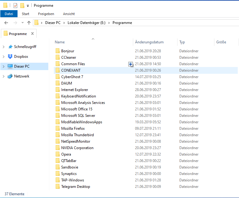 - Im Ordner Programme, sind wie gesagt noch die Ordner früher installierter Programme vorhanden, aber sie sind leer (siehe Bilder).