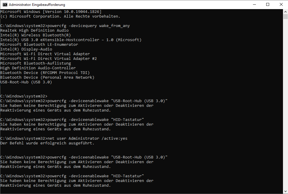 Über CMD (Admin) und dem Hauptbefehl "powercfg", wird mir ständig die selbe Fehlermeldung (im Anhang) angezeigt. Egal ob es in der Liste aufgelistet oder nicht, sobald es ein nicht vorhandener Gerätename ist, wird angezeigt, dass es falsch geschrieben worden ist bzw. falscher Befehl.
