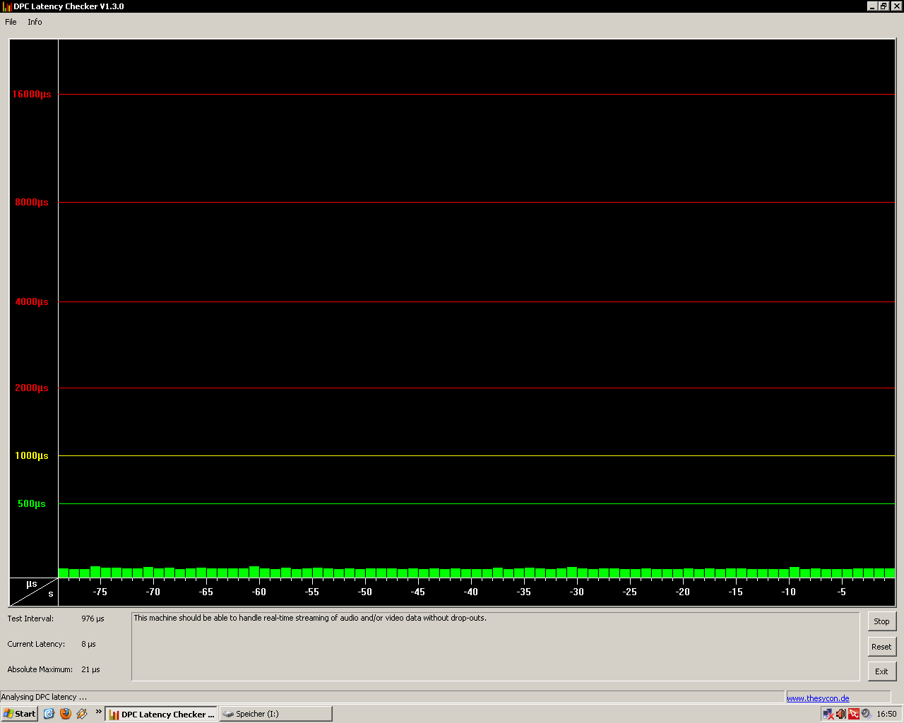 Ich habe unten mal die DPC Lantency Checker Auslesungen angehängt von PC und Notebook, wie man sieht gibt es deutliche Unterschiede. Ein deaktivieren von (praktisch) allen nicht gebrauchten Geräten (auch USB Ports und Bluetooth Sendern etc.) hat bei mir keinen Vorteil mehr gebracht - Liegt es eventuell an Windows 7, dass die Latenzen beim Notebook knapp 10x so hoch sind wie am PC im Schnitt?