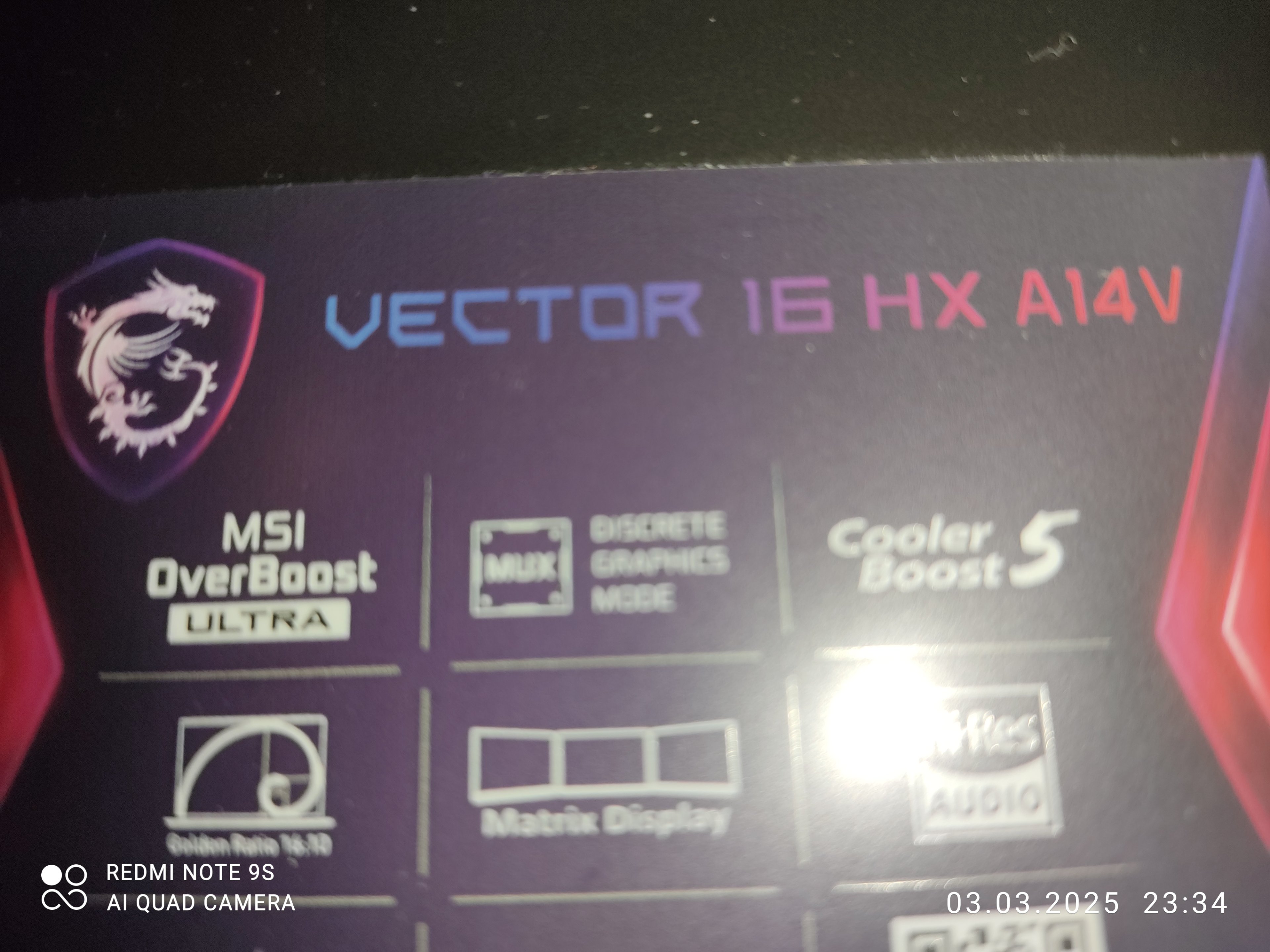 Ach ja das Teil ist ein MSi Vector, Ich Stelle hier ein Bild des Aufklebers am Bedientfeld ein.Ost übrigens mit OS Windows 11