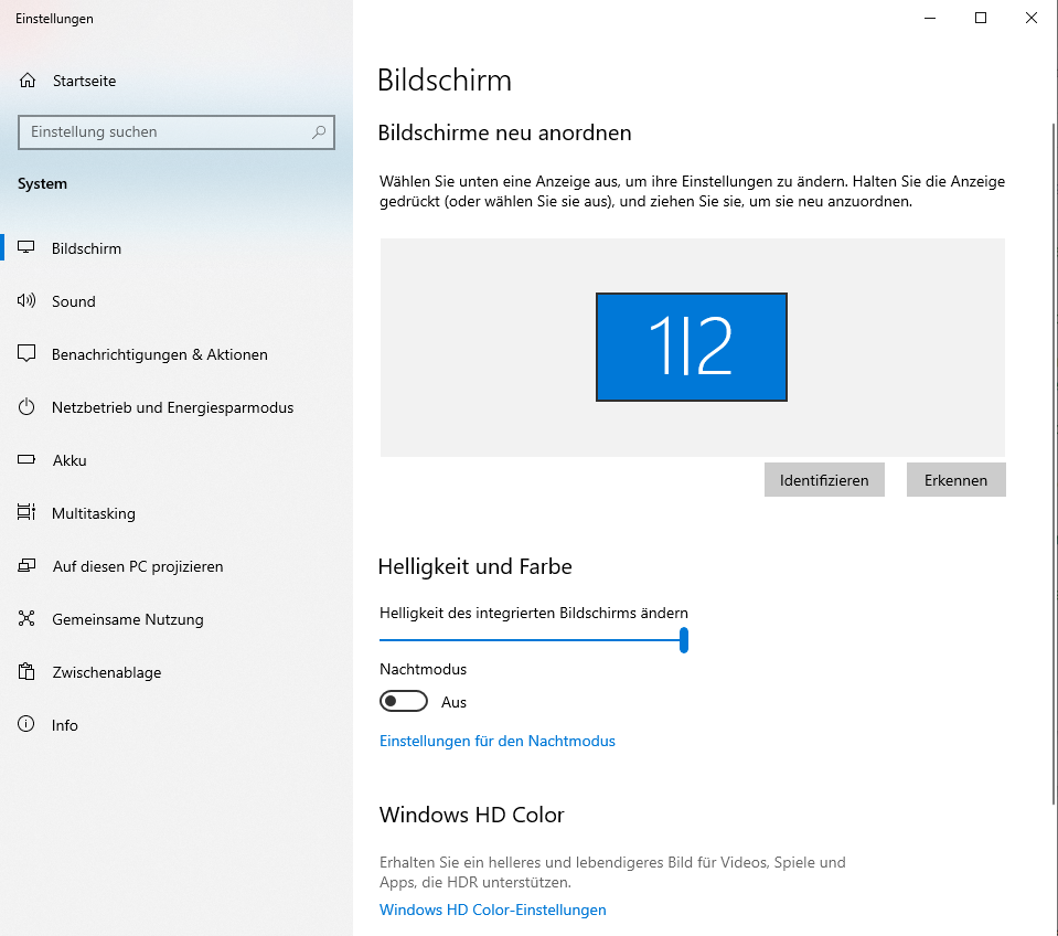 ich habe geschäftlich ein neues Notebook erhalten (Lenovo Thinkpad T14s). Bisher hatte ich im Büro nur einen Mini-PC. Das Notebook ist über eine Think Pad Dockingstation an einen Monitor (Acer B246HYL) angeschlossen. Die Gelegenheit wollte ich gleich nutzen, um die Anzeige des Notebooks zu erweitern, sozusagen als kleinen Zweitbildschirm. Leider funktioniert das nicht wie gewohnt. Die Bildschirme werden in der Form 1|2 angezeigt, ich kann also keine Anzeige als Hauptanzeige einstellen. Ich habe im Netz gelesen, dass möglicherweise Treiber fehlen. Keine Ahnung, ob da was dran ist. Seltsam ist zudem, dass die Aktualisierungsrate des Monitors 60,000 Hz beträgt, beim Notebook jedoch 60,033 Hz. Ist das vielleicht der Grund?