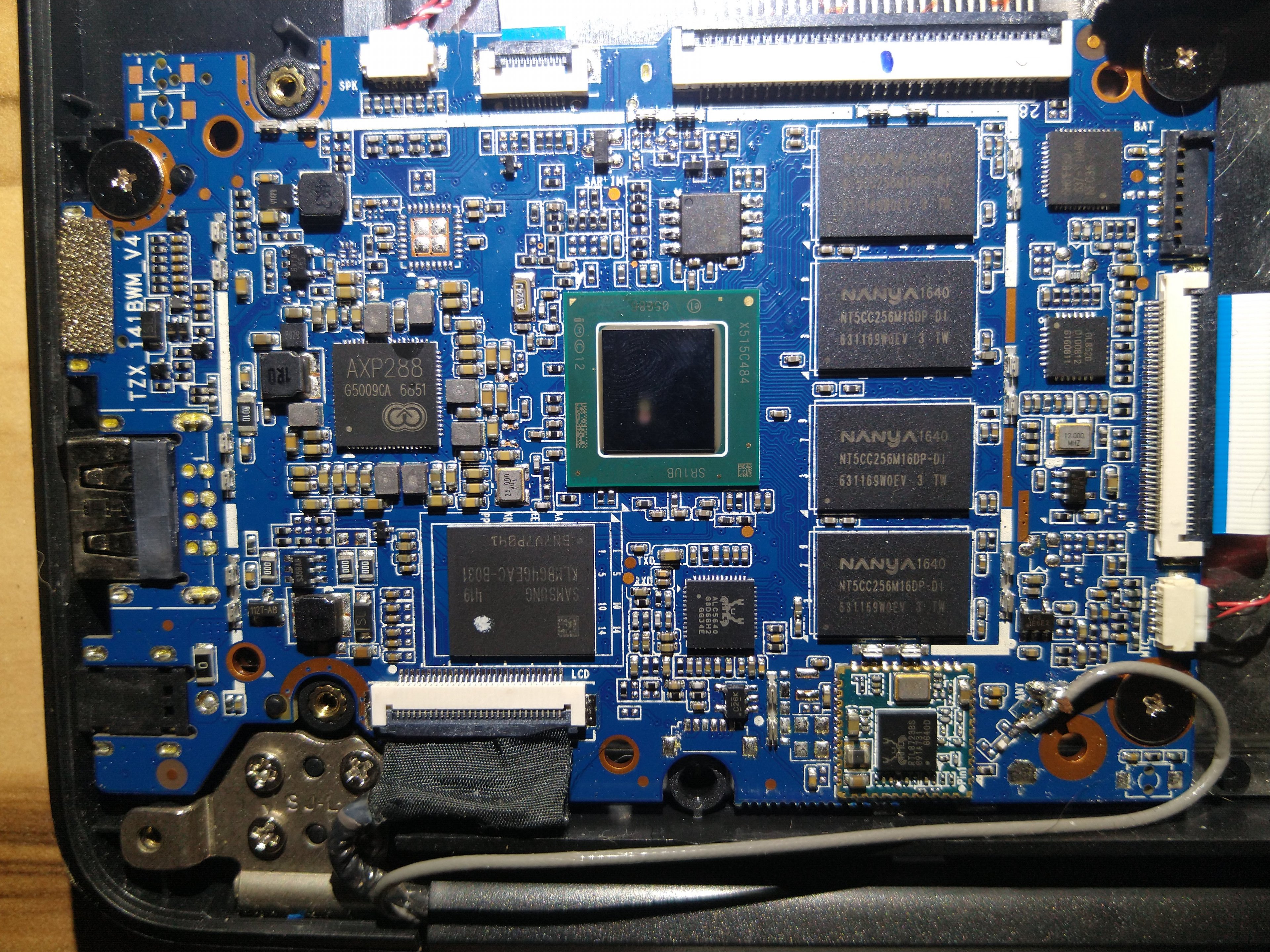 Auf dem Mainboard befindet sich keine CMOS Batterie und (wie bei vielen Notebooks) auch kein Jumper zum stecken.