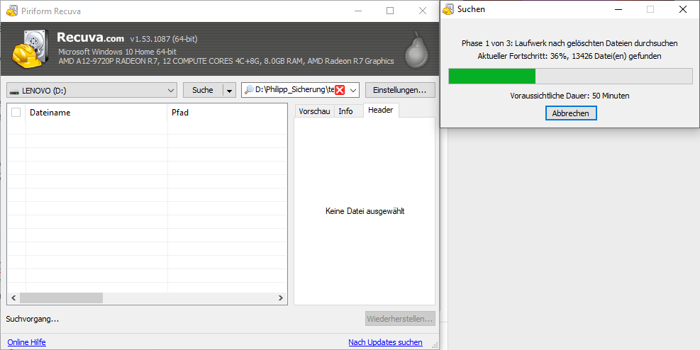 Das ist übrigens noch eine Meldung von Recuva: