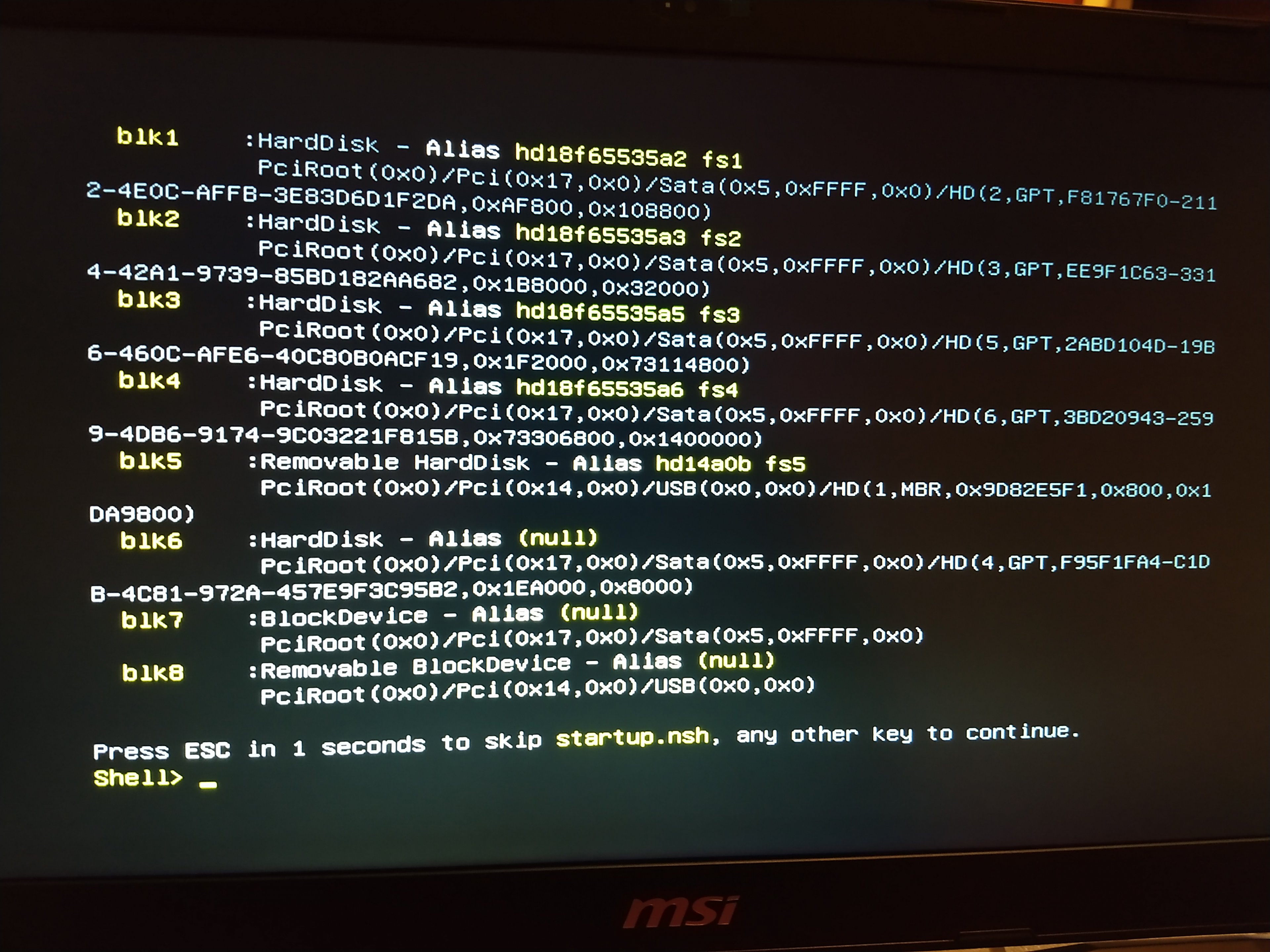 Hallo, hab mir ein Notebook von MSI gekauft. Es startete von Anfang an nur im EFI Shell. Ich hab zwar Windows 10 installieren können, aber bei jedem Neustart lande ich wieder im EFI Shell.