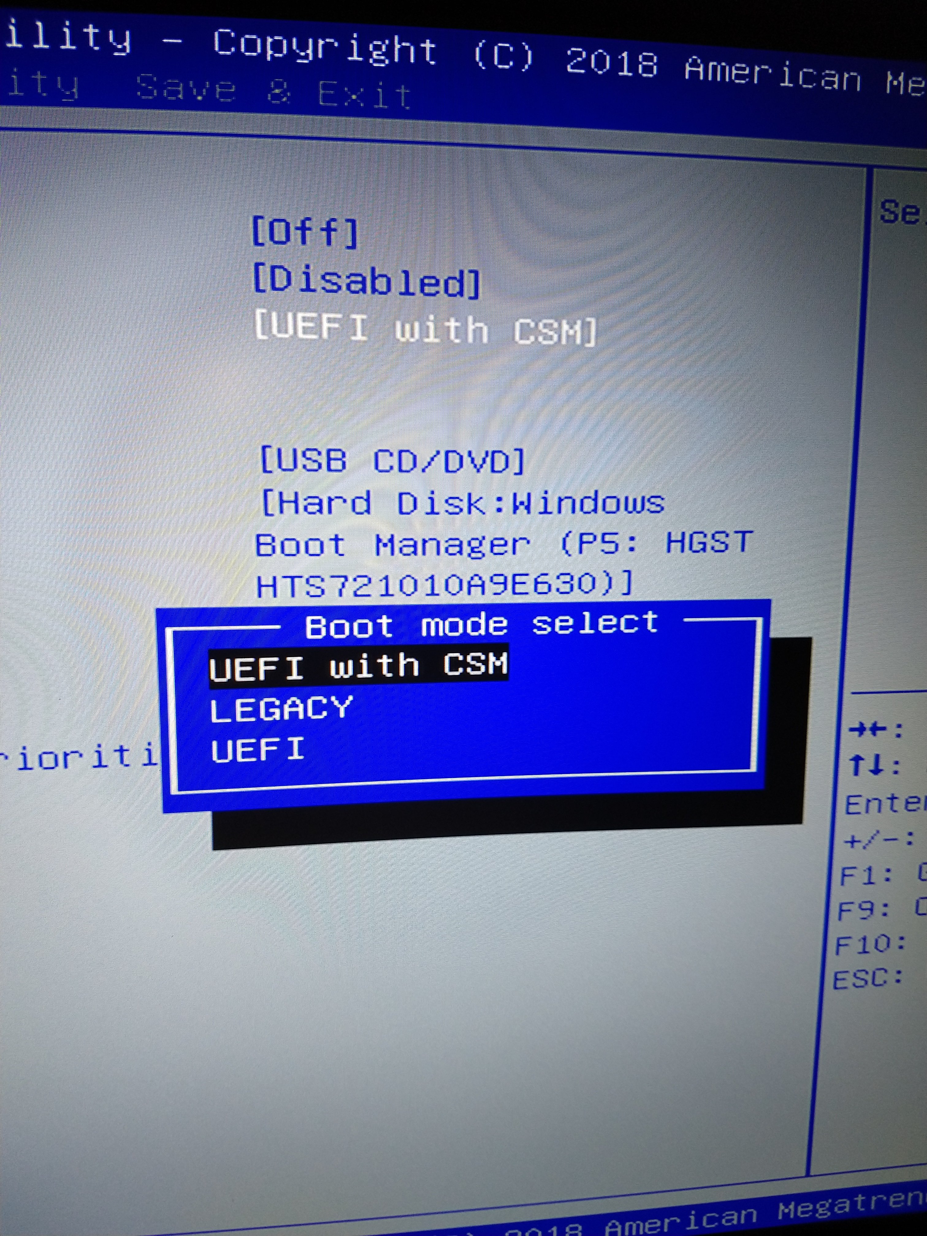 Im BIOS kann ich auch nichts anderes auswählen. UEFI zu wählen geht nicht, dann erscheint die Meldung "invalid". Einzig Legacy haut hin, das wollt ich aber nicht nehmen.