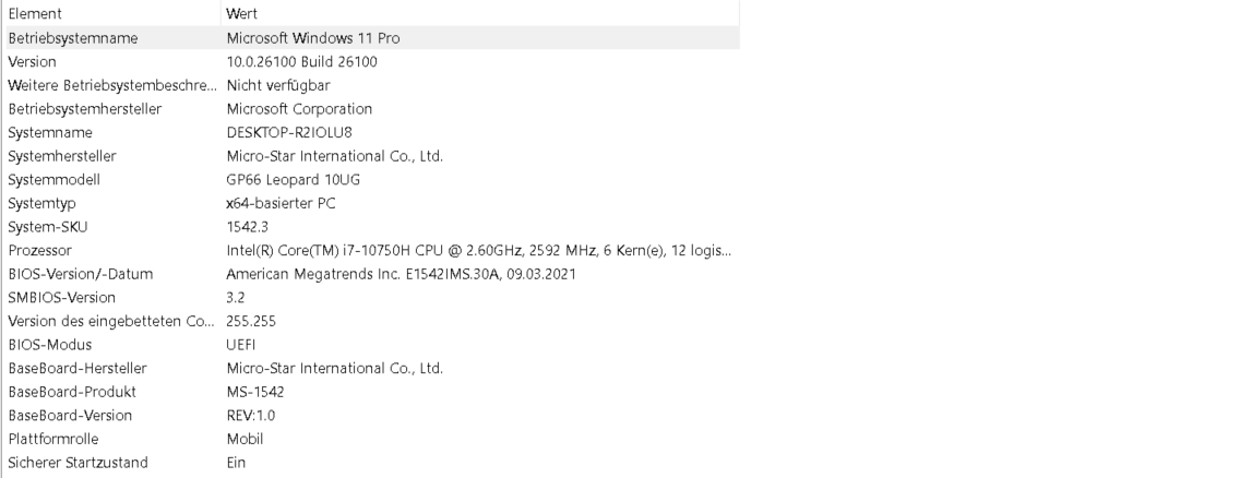 Hallo, schon mal vielen Dank für das Interesse an dem Thema, ich habe einen MSI GP66 Leopard 10UG-425 Laptop der mittlerweile schon 4 Jahre alt ist. Diesen habe ich viel benutzt, was man mittlerweile auch merkt. Ich habe viele Probleme obwohl ich das System mehrmals zurückgesetzt habe, deshalb denke ich das es an der Hardware liegt.