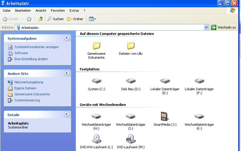 Als ich auf dem Arbeitsplatz auf E: mit rechter Maustaste geklickt habe fragte mich Windows ob ich den nicht formatierten Datenträger formatieren will?
