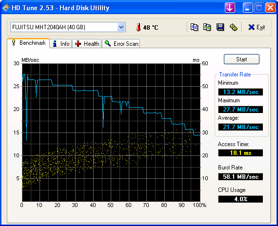 Ich habe Testweise HD-Tach aufgespielt um die zugriffszeiten, sowie die Übertragungsrate zu überprüfen: