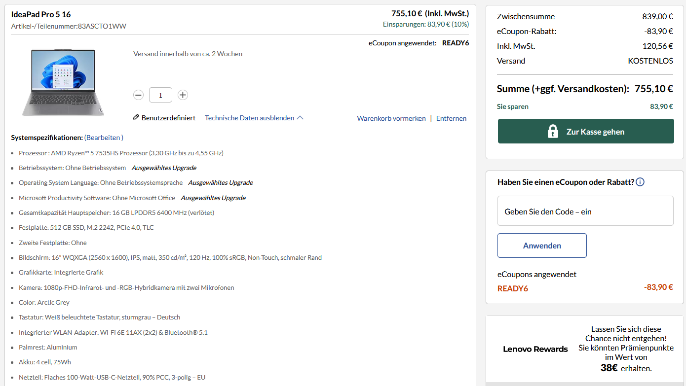 -> Möglichkeit die SSD selbst zu wechseln wäre gut