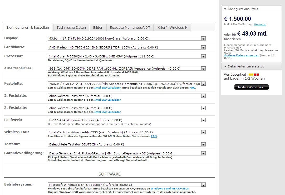 Im Auge hatte ich ein i7 3630 mit ner Radeon HD 7970m Graka und 8 GB RAM, weiß aber nicht ob das vielleicht sogar überdimensioniert wäre!?