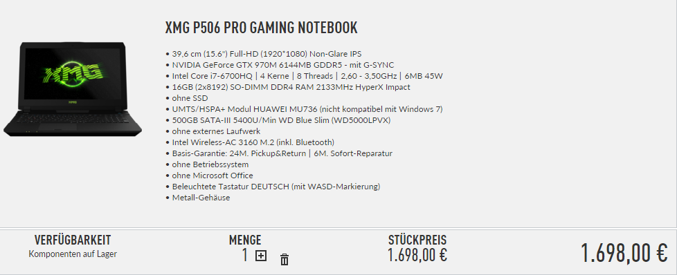 Also Preislich sollte sich der Laptoo unter 1500€ bewegen. Mxm, genau! wobei wenn das jetzt die Auswahl verkleinert ist es doch weniger von nöten. Wichtig ist das die gebotene Leistung stimmt aber auch die Qualität. Hatte mal einen AW M17 und der ist auf Grund unzähliger Mängel wieder zurück gegangen. Zeitlich wäre es optimal heute oder morgen noch zu bestellen da ich diesen dringen brauche für eine Abschlussprüfung. FreeDos wäre doch auch ok habe ja noch windows 10