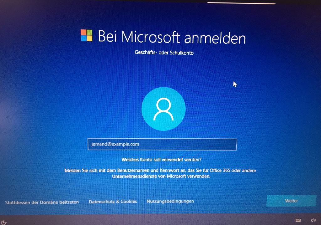 Geht klar. Also konnte jetzt bei der Installation gar nichts mehr aussuchen von wegen Partitionen etc... lief jetzt aber alles durch bis zu diesem Punkt ... was soll ich hier angeben? Ich will keine Microsoft Konto - kann ich das nicht iwie skippen?