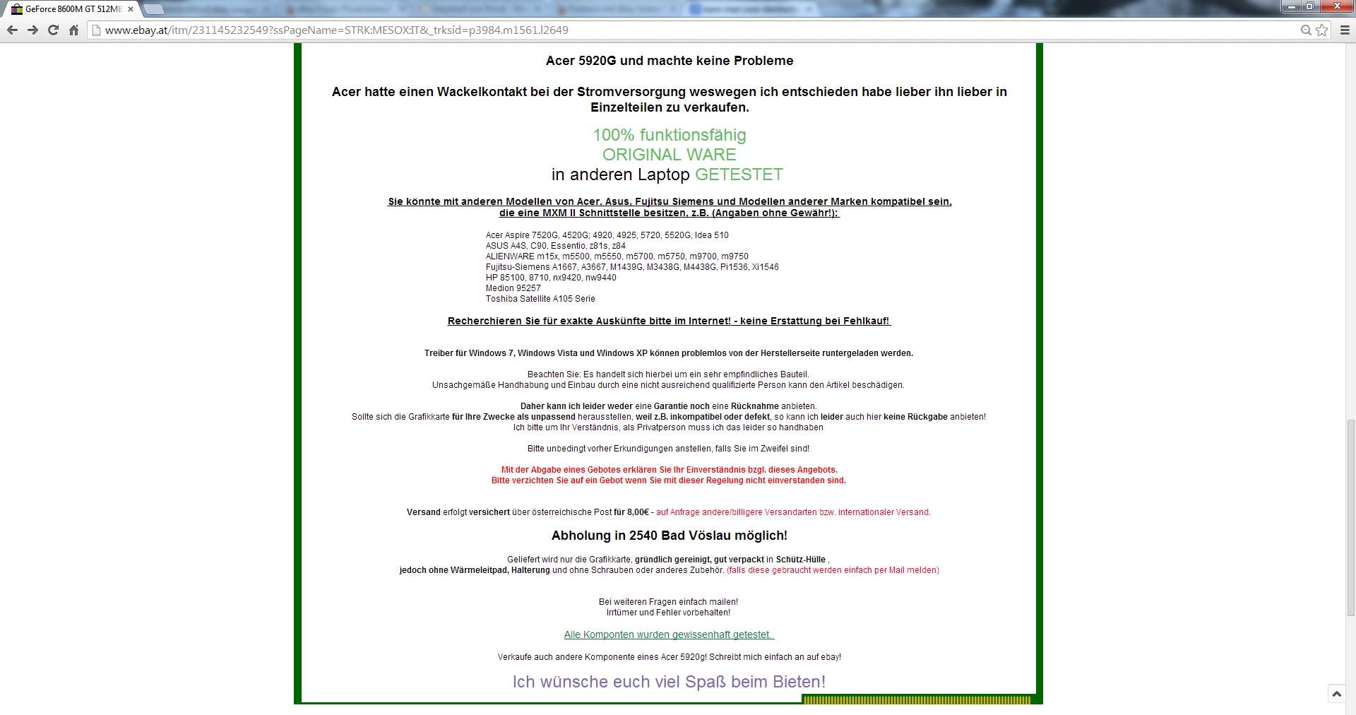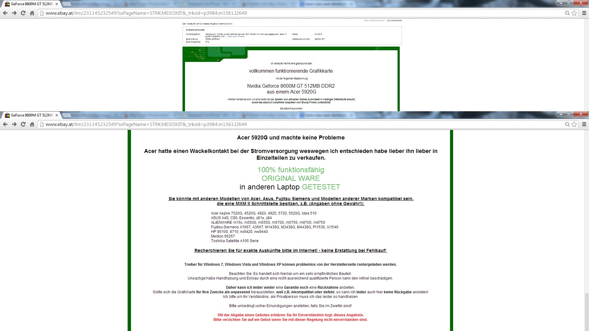 Ich habe auf Ebay als Privatperson eine Notebookgrafikkarte verkauft und der Käufer (aus Italien) behauptet jetzt sie wäre defekt!