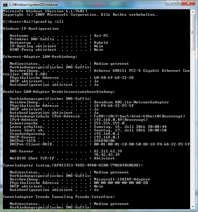 Ich habe statt des WLANs auch mal LAN verwendet, kein Erfolg.