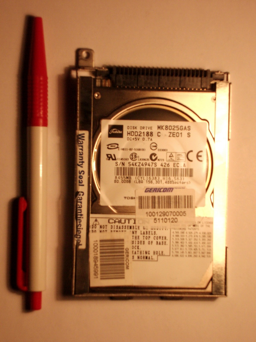 Die bisherige HDD war von Toshiba (wenn ich mich nicht irre), hatte 4200 U/min und als Anschluss (vermutlich) Ultra-ATA.