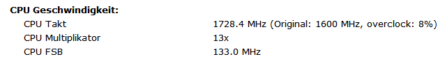 Du hast 94°C ohne CPU-Auslastung? (33 % sind fast nix). Das ist definitiv nicht normal. Allerdings machen die 133 MHz Übertaktung da keinen Unterschied.