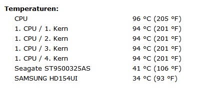 Ich habe das Asus N71Jq Notebook mit dem Intel Quad Core mit 4 x 1,6 gHz. Mein Notebook wird sehr heiß (~94° im Durchschnitt). Trotz dem Coolingboard , welches ich mir aus 3 Lüftern gebaut habe. Ich habe durch Everest erfahren, dass meine CPU übertaktet ist (serienmäßig). Deswegen wohl auch die hohen Temperaturen...