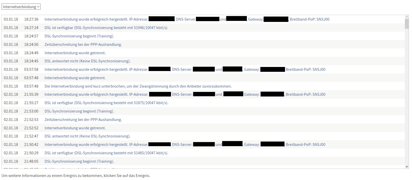 Der Verbindungsabbruch dauert manchmal mehrere Minuten an. Nach Wiederaufbau geht es manchmal für einige Minuten, und bricht dann wieder ab.