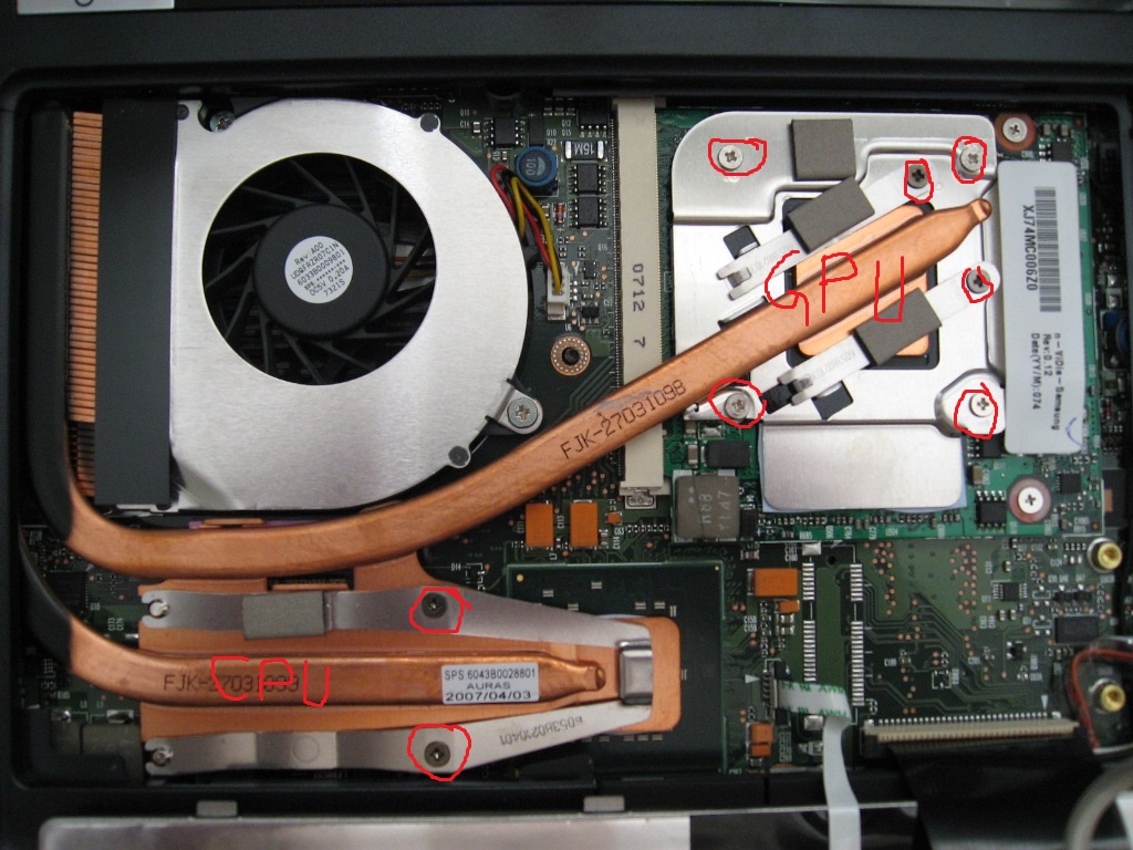Wenn du dein Notebook schon gereinigt hast, dann hättest du in diesem Schritt auch die WLP tauschen sollen. Die trocknet mit den Jahren ein. Außerdem kleistern die Hersteller da sowieso immer viel zu viel drauf (Achtung: Oftmals werden Pads/Silberfolien verwendet, kratz die bloß nicht runter).