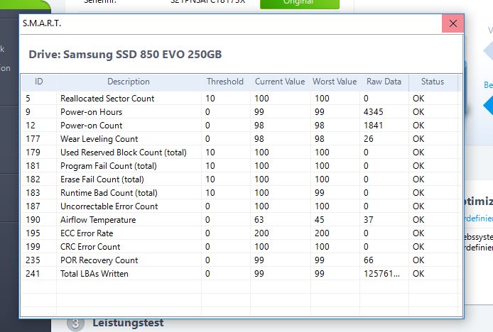 Es handelt es ich um eine Samsung SSD Evo 850 250GB die nicht mal 2 Jahre alt ist.
