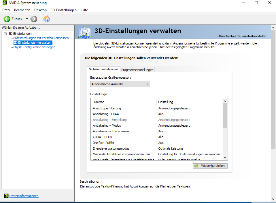 Da mein Desktop aber die Grafikeinheit der CPU nutzt, gibt es diese Einstellung nicht.