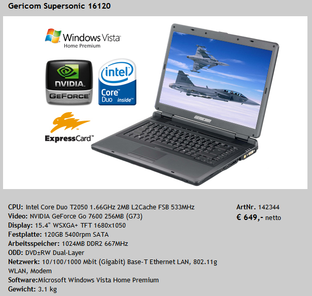 Im Anhang noch ein GERICOM-Angebot (GBit-LAN), vllt. ließe sich der Speicher ja auch noch aufrüsten.