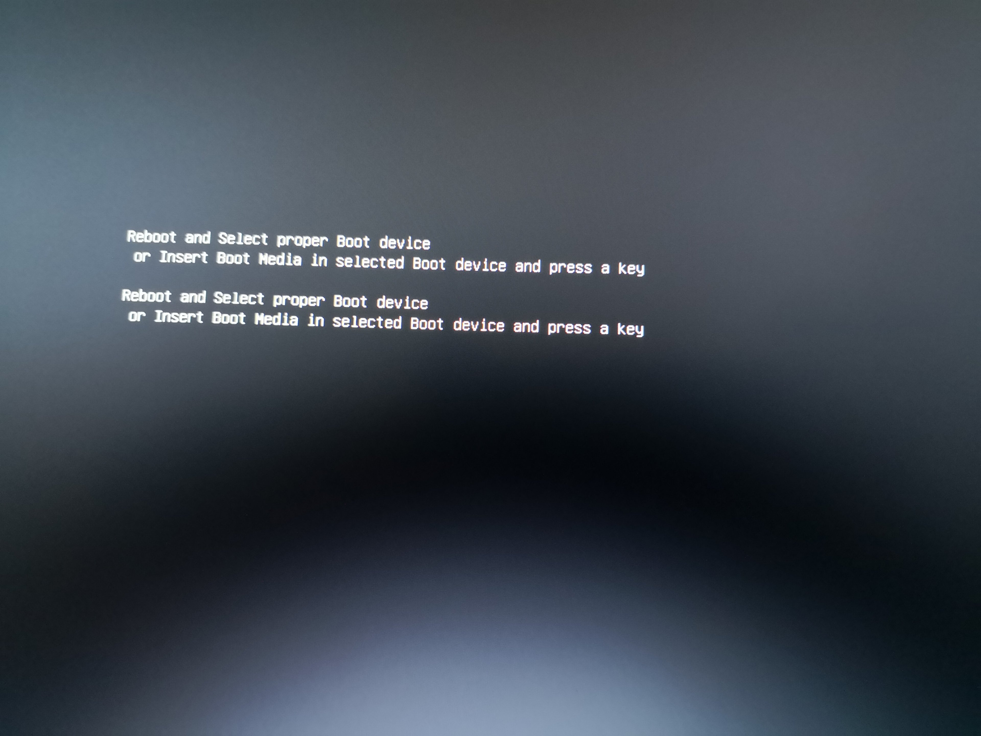 Beim Starten bekomme ich die Meldung Reboot or Select proper Boot device.