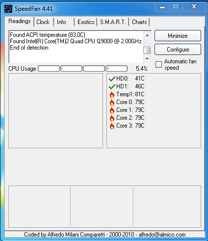 Ich habe SpeedFan heruntergeladen und die Werte sprechen eindeutig für sich. Oder?