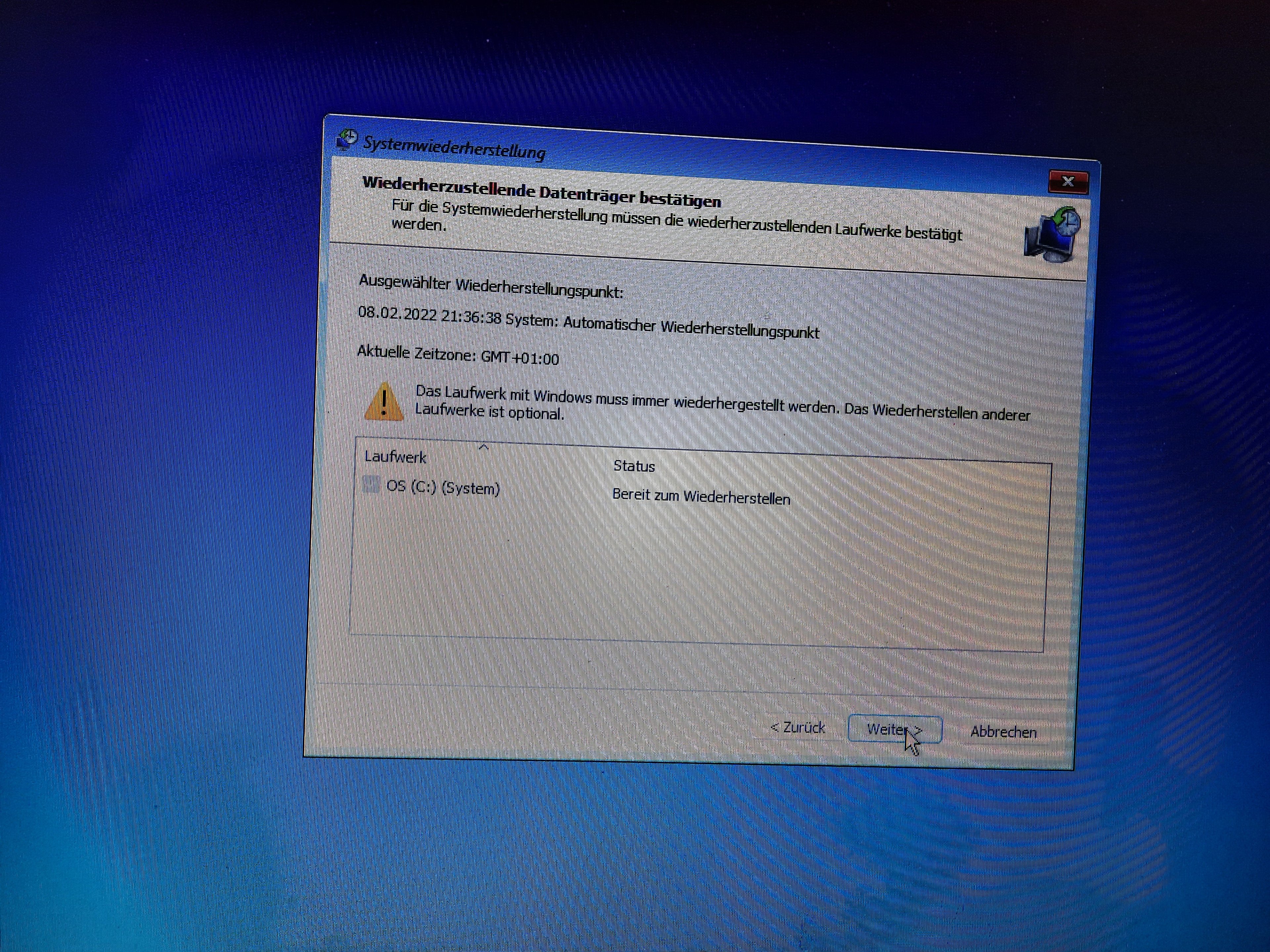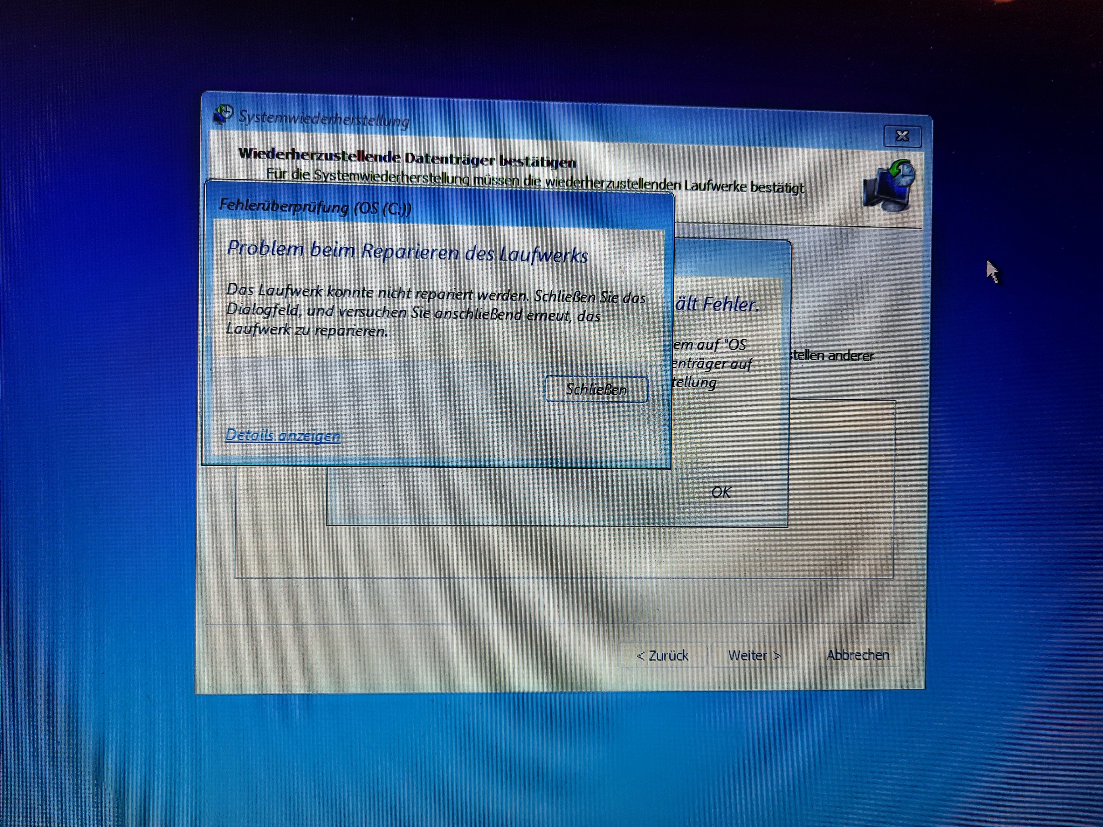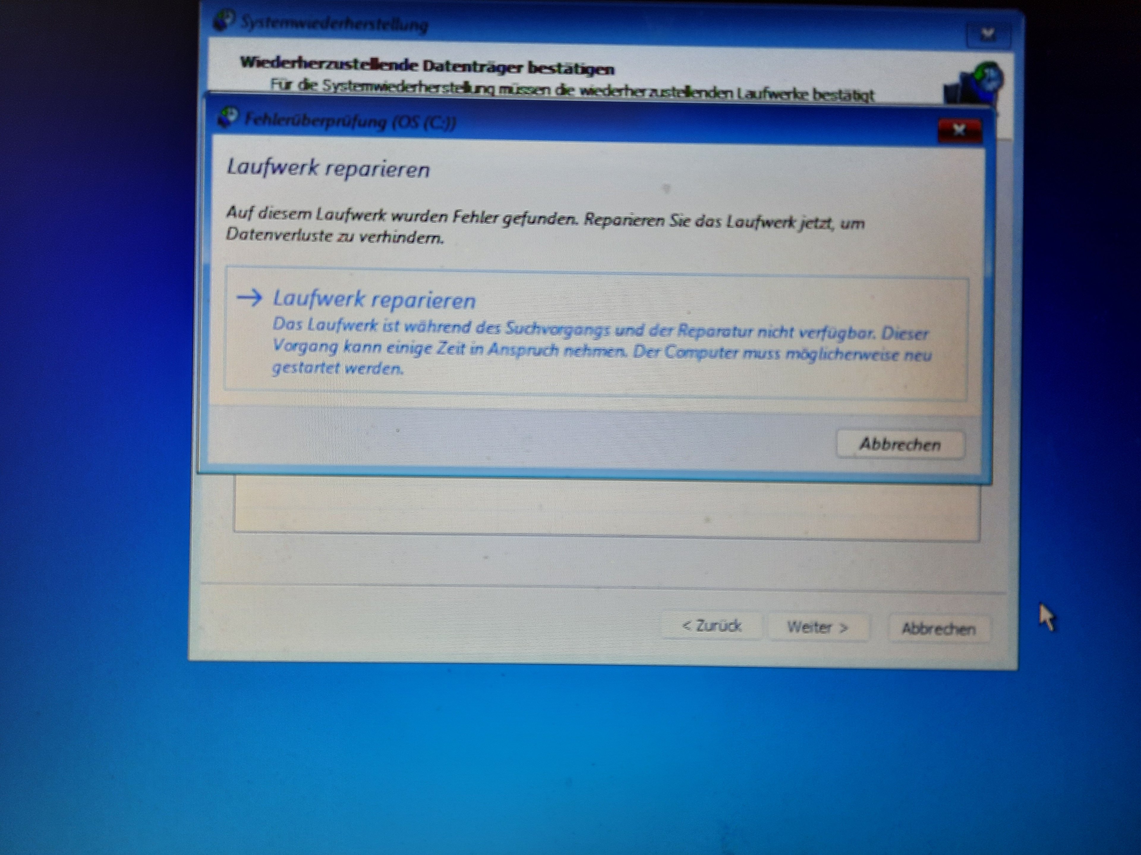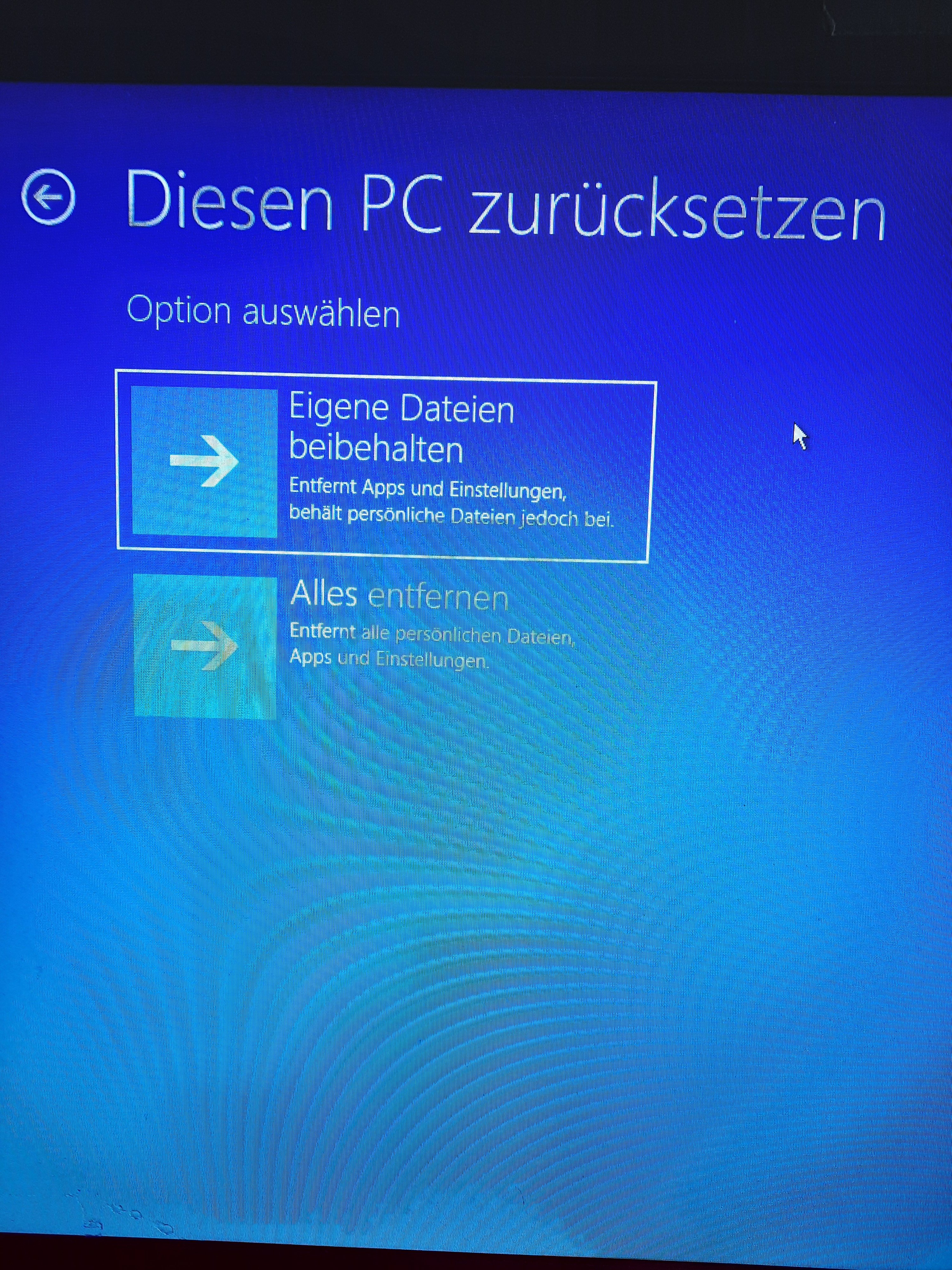 Der Laptop hat ein Update durchgeführt. Er startet und dann kommt die Anzeige, siehe Foto. Klicke ich oben, fährt er runter und startet neu bis wieder diese Anzeige kommt. Klicke ich rechts fährt er runter. Klicke ich auf das untere Feld, kommen die folgenden Bilder. Während dem Neustart kommt, automatische Fehlerbehebung wird durchgeführt. Problembehandlung habe ich auch gemacht ist 2,5 h gelaufen. Dann kam eine BIOS Anzeige und ich habe auf enter/exit geklickt. Dann kam wieder das Bild Option auswählen.