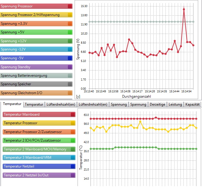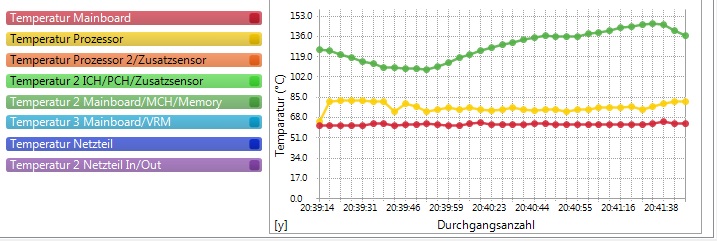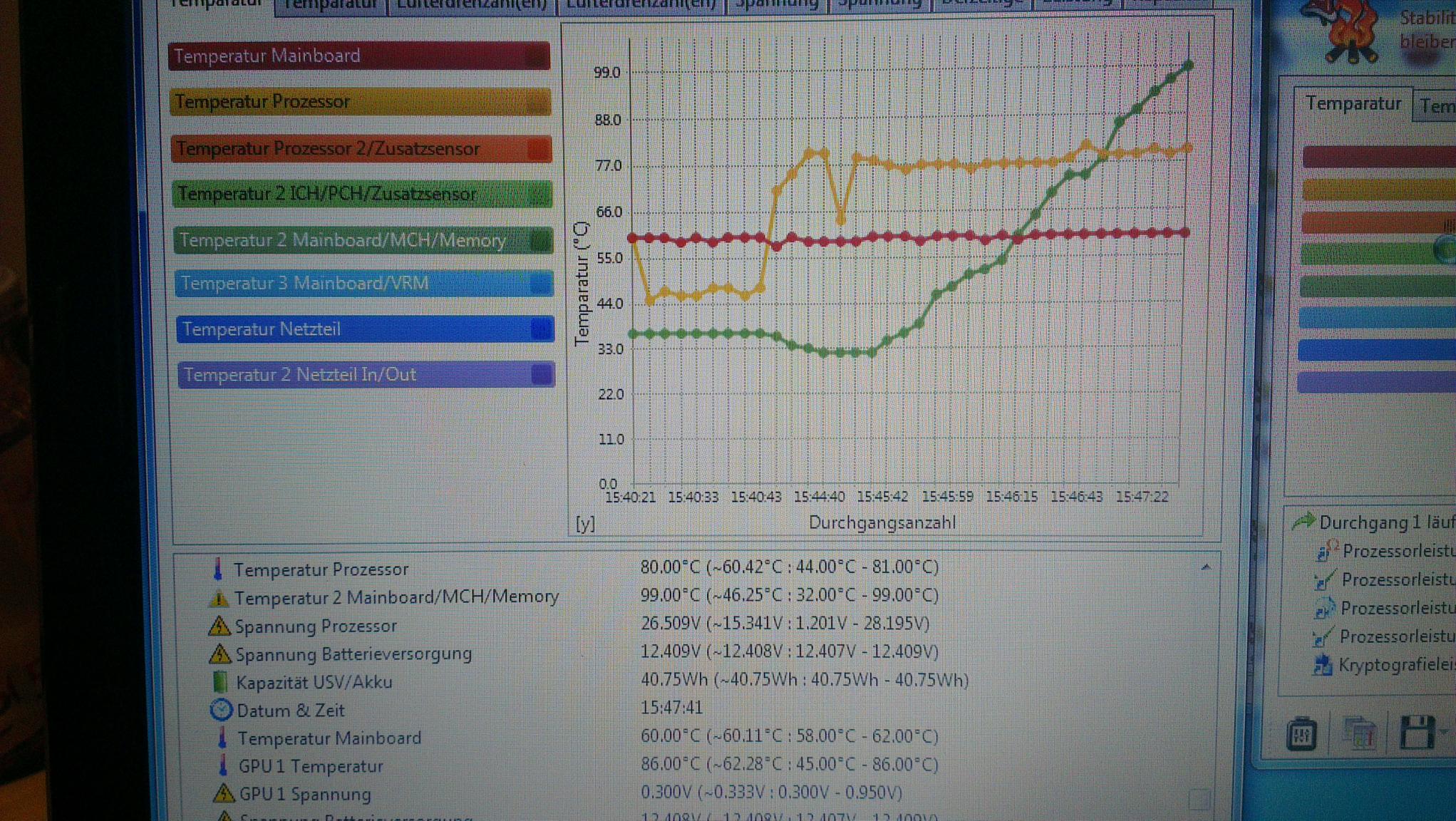 Die Grüne Linie bei den Temperaturen ist hier jetzt sehr konstant. Wenn ich einen Burn-In-Test mache steigt diese nach einer gewissen Zeit sehr stark an und bei 100°C stürzt dann mein Notebook ab, kann es damit was zutun haben?