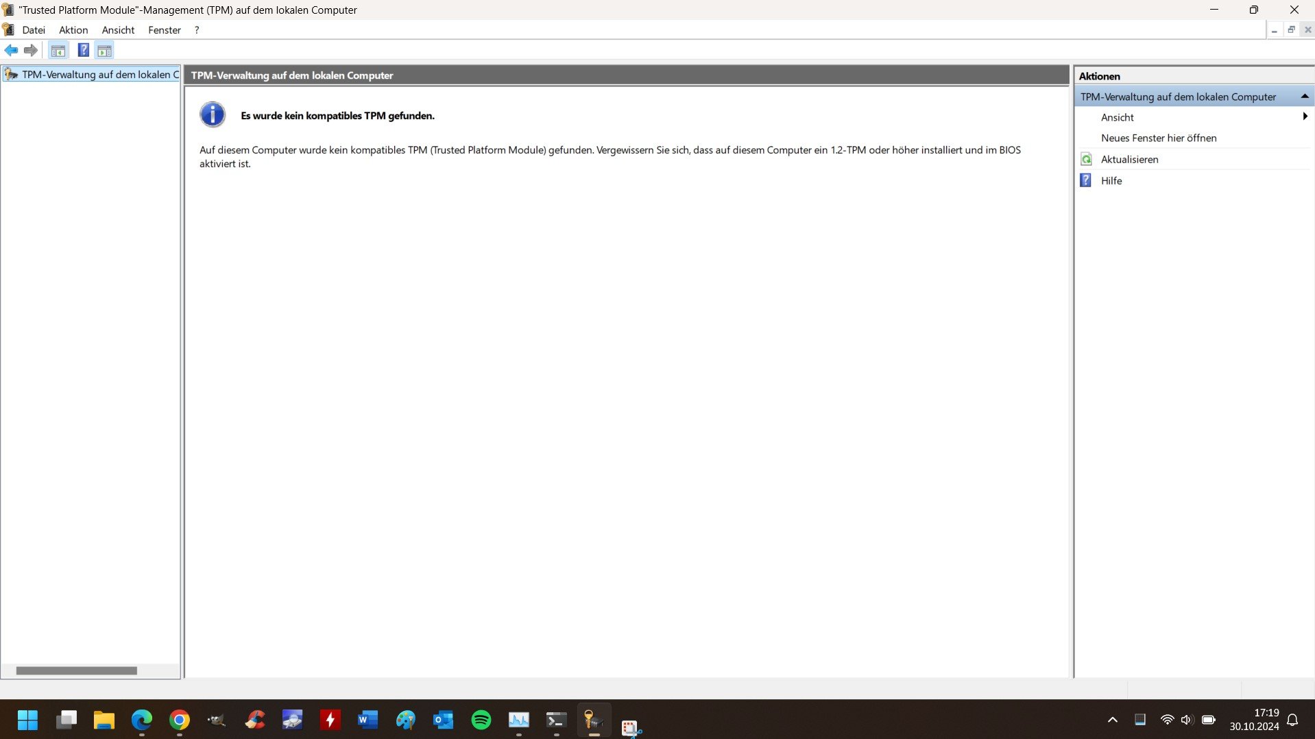 Problem: es ändert sich nichts im Verhalten --> im Windows wird weiterhin kein TPM-Modul im Gerätemanager erkannt (weder als "Sicherheitsgerät", noch unter "Systemgeräte").