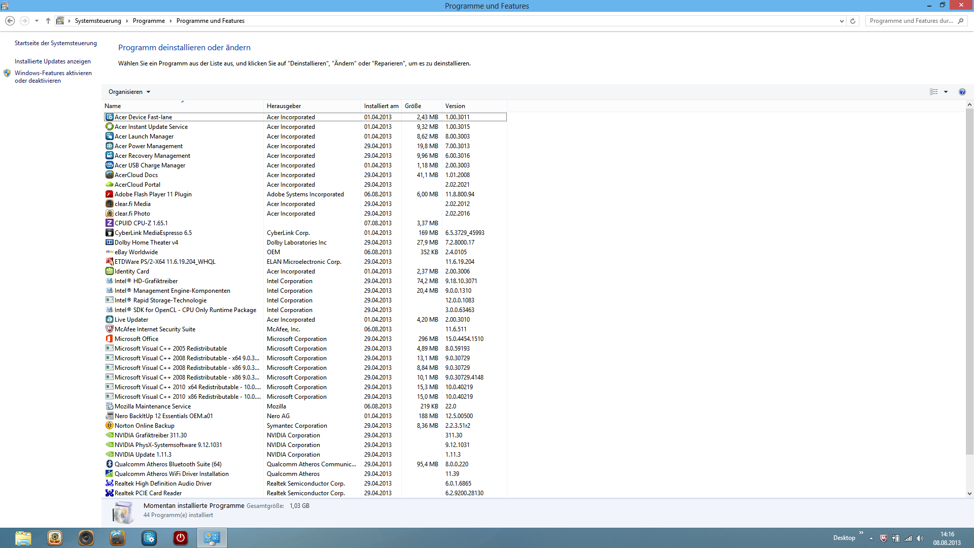 Danke bis hier hin an alle die geholfen haben. Ich hab weiterhin Probleme (verschiedene Player spielen Musik nicht richtig ab etc.) mit dem Notebook,aber die könnten auch an Win8 liegen. Dafür mach ich dann einen neuen Thread auf.