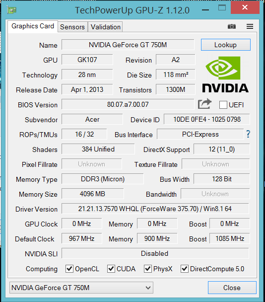ich habe ein Acer V5-572G (mit 750M) und seit kurzer Zeit bleibt dieser immer stehen (Freeze). Darauf erstmal Speedfan genommen und Temperaturen gecheckt, wobei mir dann auffiel das der GPU Sensor fantastische, aber irgendwie doch problematische, 0 Grad anzeigt. Skype und solche Programme laufen jetzt, aber nach einer Zeit wird das Ding halt ziemlich warm und die Lüfter sind auch nicht mehr so laut (überhaupt an???) bei Volllast.