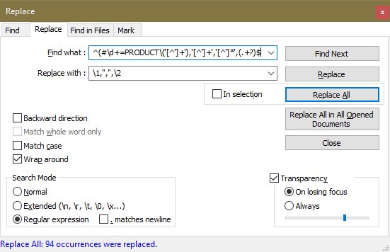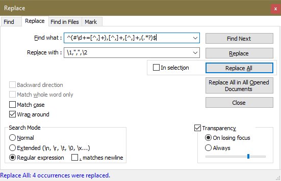 Frage: Ist es möglich mit der in Notepad++ Suchen & Ersetzen Funktion