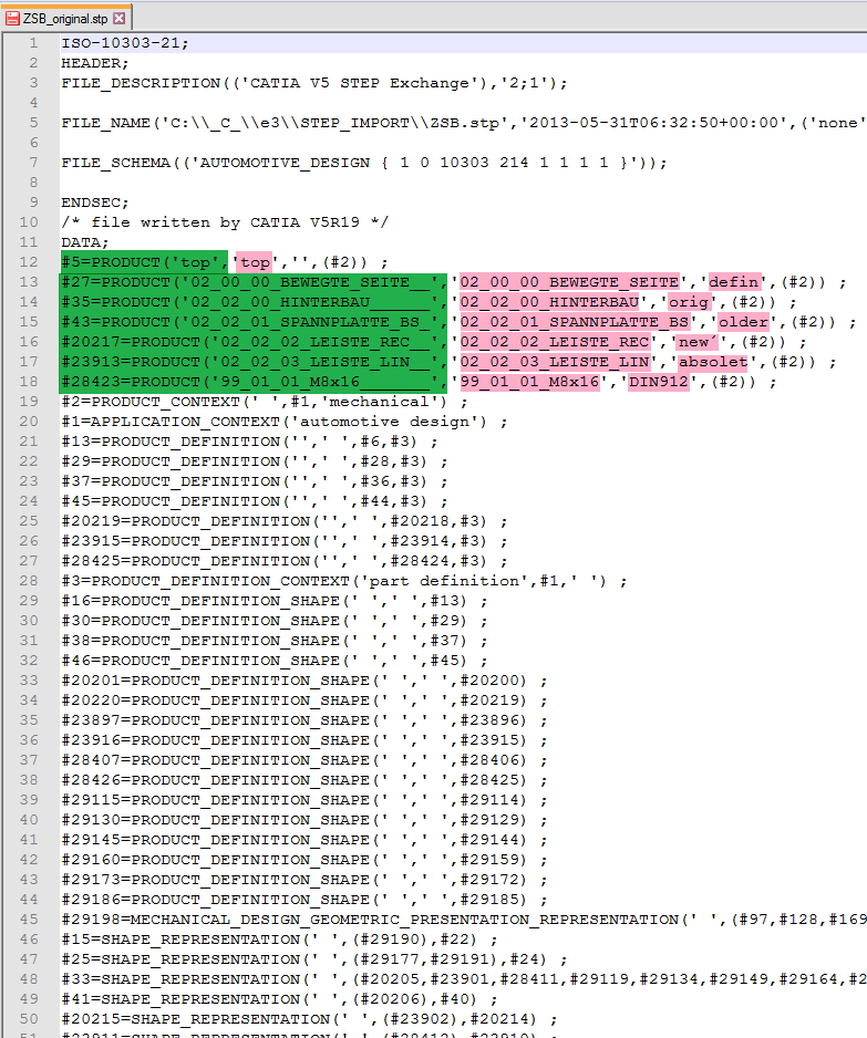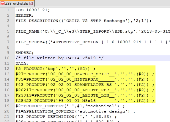 Eine STEP Datei (aus CAD) enthält am Anfang viele Textzeilen wie diese hier;