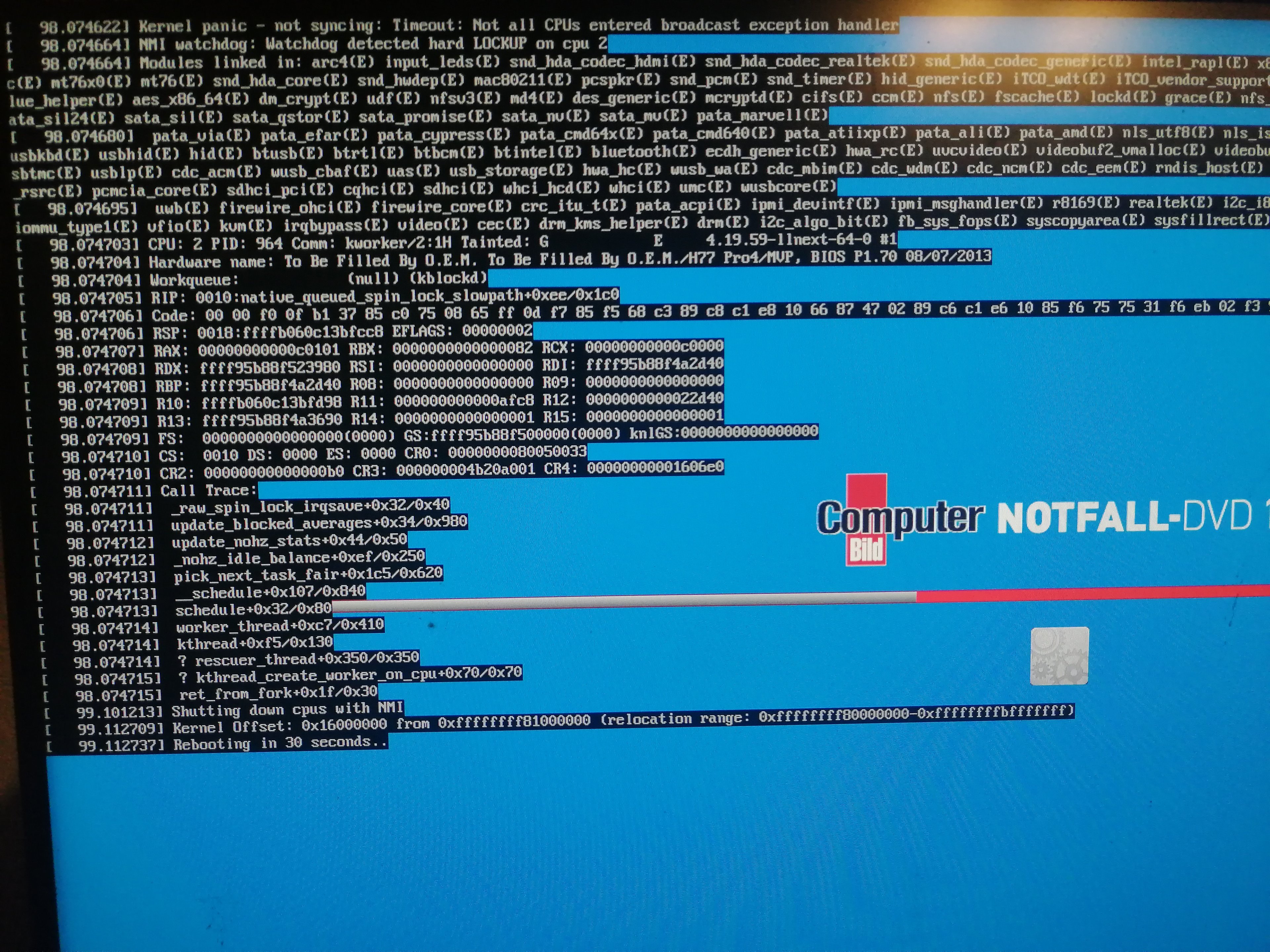 Nun zu meinem Problem: Ich habe mir das Notfall-Programm von Computerbild sowohl auf DVD als auch auf USB-Stick installiert. Mit beiden ist der Bootvorgang problemlos, aber ca. kurz vor der Hälfte bleibt der Ladebalken stehen, und da steht er auch noch nach Stunden. Auf dem anderen PC starten beide Medien problemlos! Alte originale Notfall-DVD´s komischerweise, und die Neuinstallation per USB-Stick lief ja auch einwandfrei. Ich stehe vor einem Rätsel….Habt ihr eine Idee?