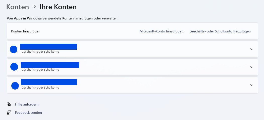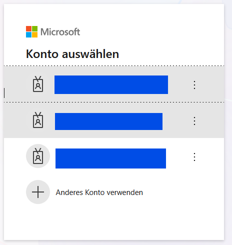 Im Browser (Firefox) bekomme ich dann immer eine Abfrage, welches Konto ich denn verwenden will. Da muss ich dann aufpassen, nicht das falsche zu erwischen, wobei das ja auch nicht dramatisch ist, dann bekomme ich halt eine Fehlermeldung, dass ich keinen Zugriff habe.