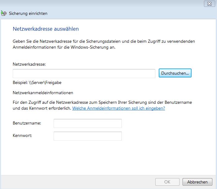 notwendiges Netzwerkkennwort bei Windows-Sicherung