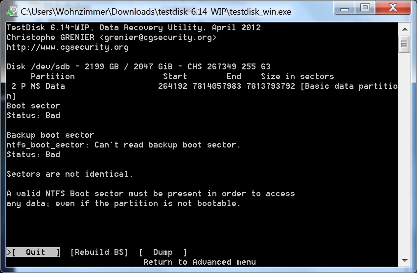 Hinterher kann in Testdisk bei Advanced das Dateisystem zum Beispiel NTFS zugewiesen werden.