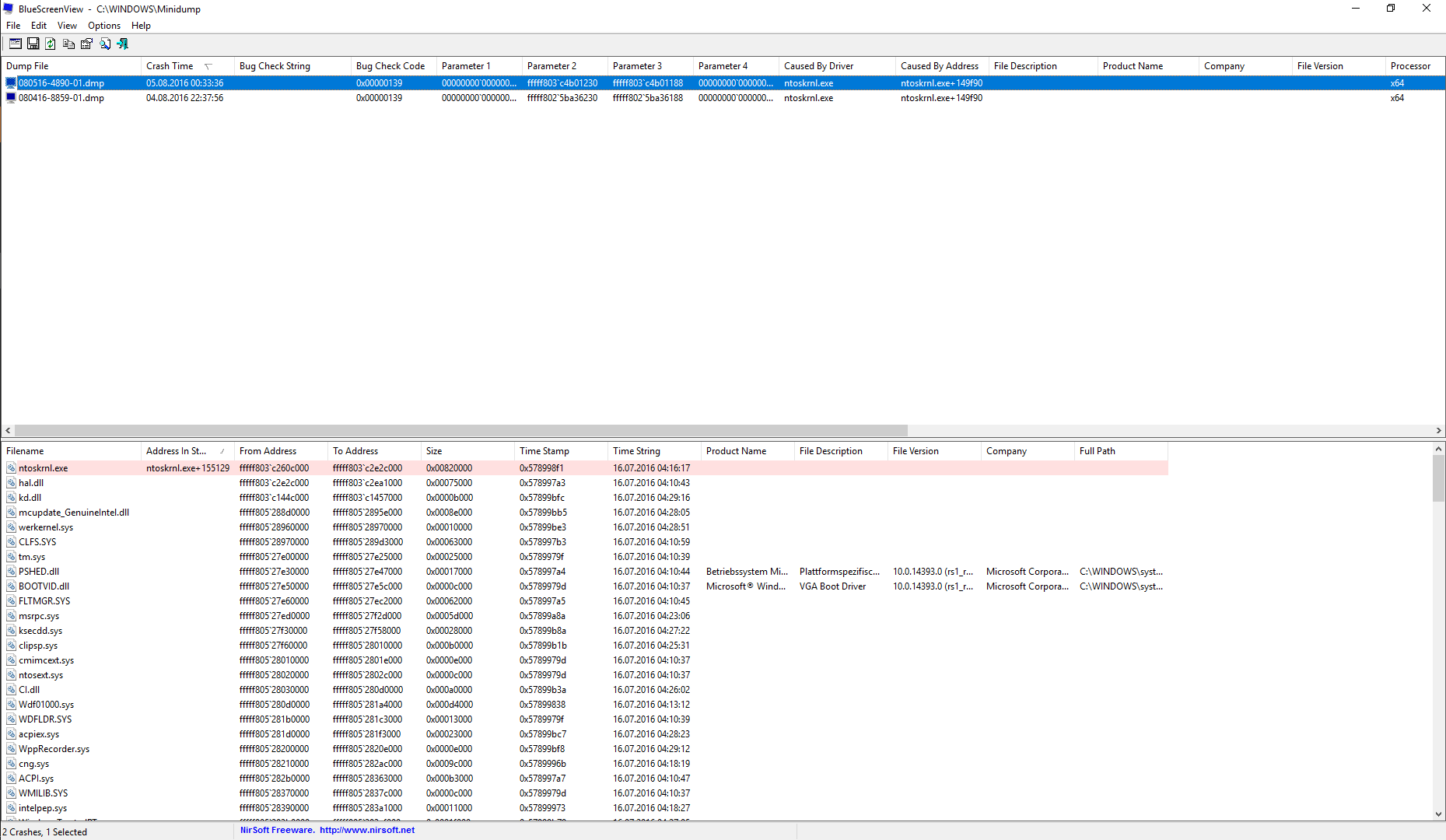 auch wenn es jetzt x Threads darüber gibt hat es mir zb nicht geholfen. Ich habe in letzter Zeit immer wieder ein Bluescreen und der Übeltäter ist anscheinend die ntoskrnl.exe Datei. An der Festplatte kann es zb nicht liegen, da die Platte Frischware ist. Ich weiss echt nicht welche Hardware, Software diese Fehler verursachen :/