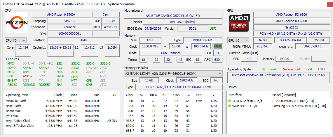 Zunächst meine PC Daten mit installiertem Windows 10 Pro: