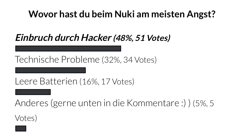 2. Hier weißt Nuki selbst darauf hin das man das NUKI nur an einem Schloss verbauen sollte welches über eine Not- und Gefahrenfunktion verfügt. Also selbst dann von außen schließbar ist wenn von innen ein Schlüssel steckt.