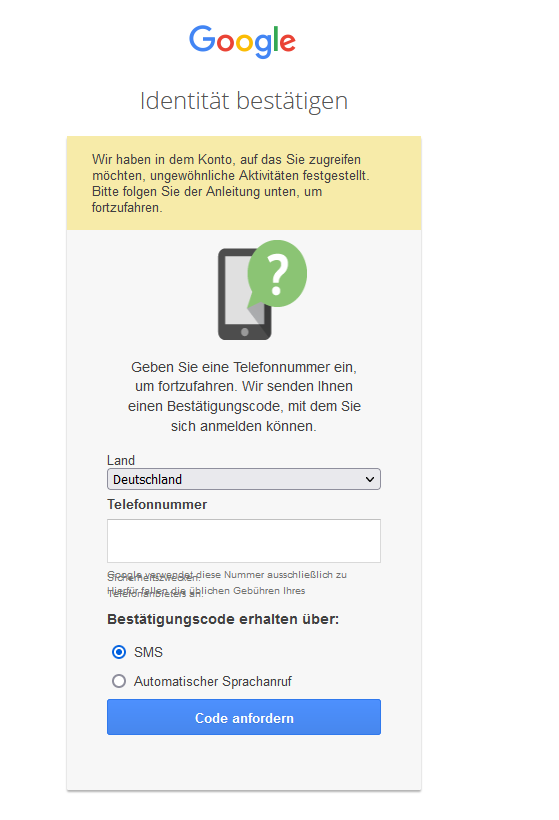 Habe mir vor ein paar Tagen eine neue Gmail erstellt, und auf einmal wurde ich heute rausgekickt und wollte versuchen mich wieder anzumelden. Da steht dann das ungewöhnliche Aktivitäten gefunden wurden, und icv sollte meine nummer angeben. Habe ich gemacht und dann steht jedes mal diese nummer kann nicht als Verifizierung verwendet werden. Habe auch schon andere Nummern ausprobiert aber die gehen auch nicht. Vpn habe ich auch keine benutzt.