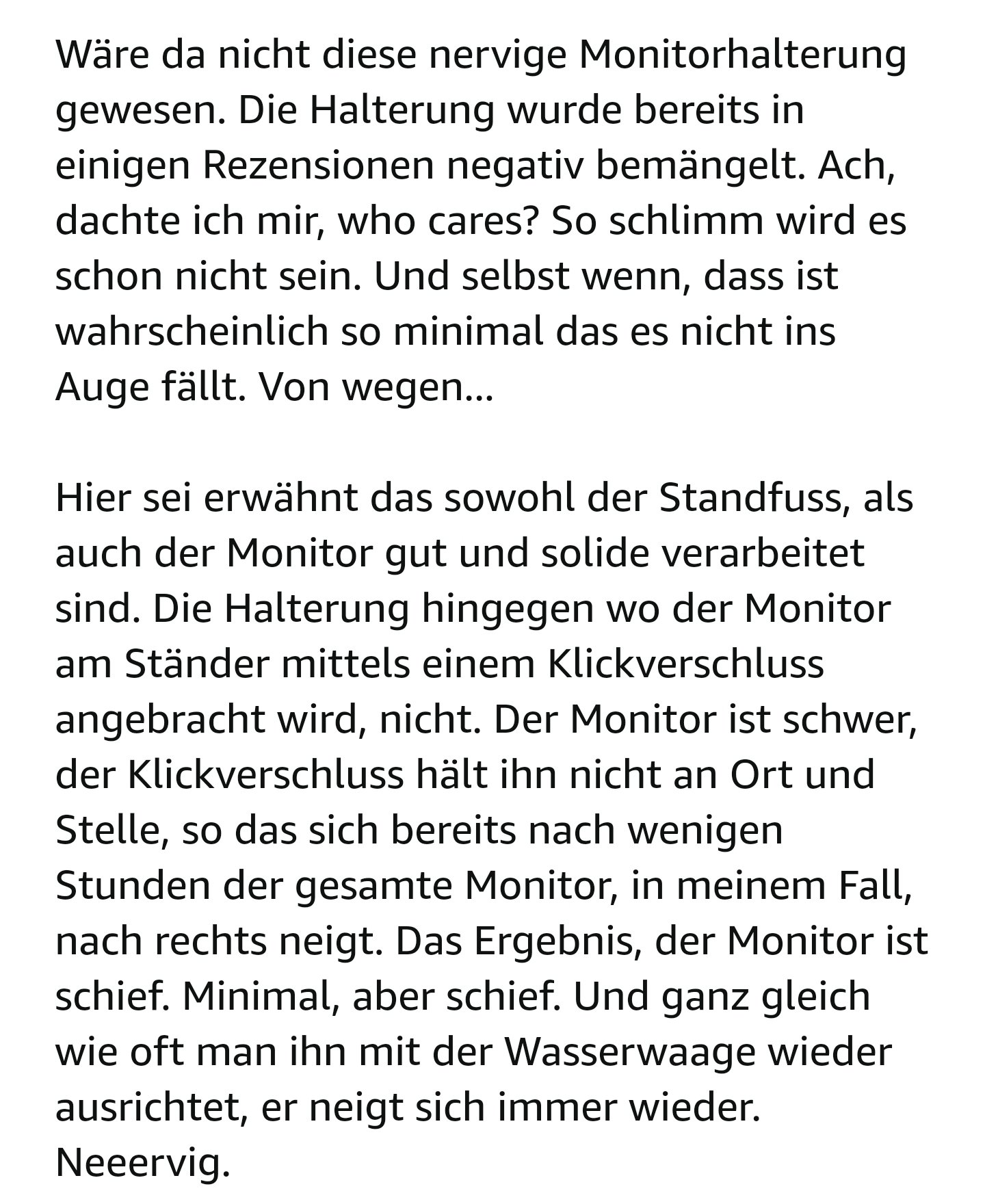 Ich dachte mir das ein Upgrade von 27" auf 32" eine tolle Verbesserung bringt. Im Grunde ja - allerdings habe ich den Abstand zum Monitor unterschätzt. Das größte Problem das ich damit habe ist wohl meine Gleitsichtbrille. Denn ich könnte wohl noch ohne Kopf anheben alles überblicken...ja wenn ich nicht im oberen Bereich auf Ferne eingestellt bin. Somit muss ich bei Lesen/Nutzen des oberen Drittels des 32" ständig den Kopf anheben und so Schmerzen im Nacken verursachen. Meine Bildschirmplatzbrille ist hier keine Alternative. Im Grunde habe ich einfach nicht genügend Abstand zum Monitor.