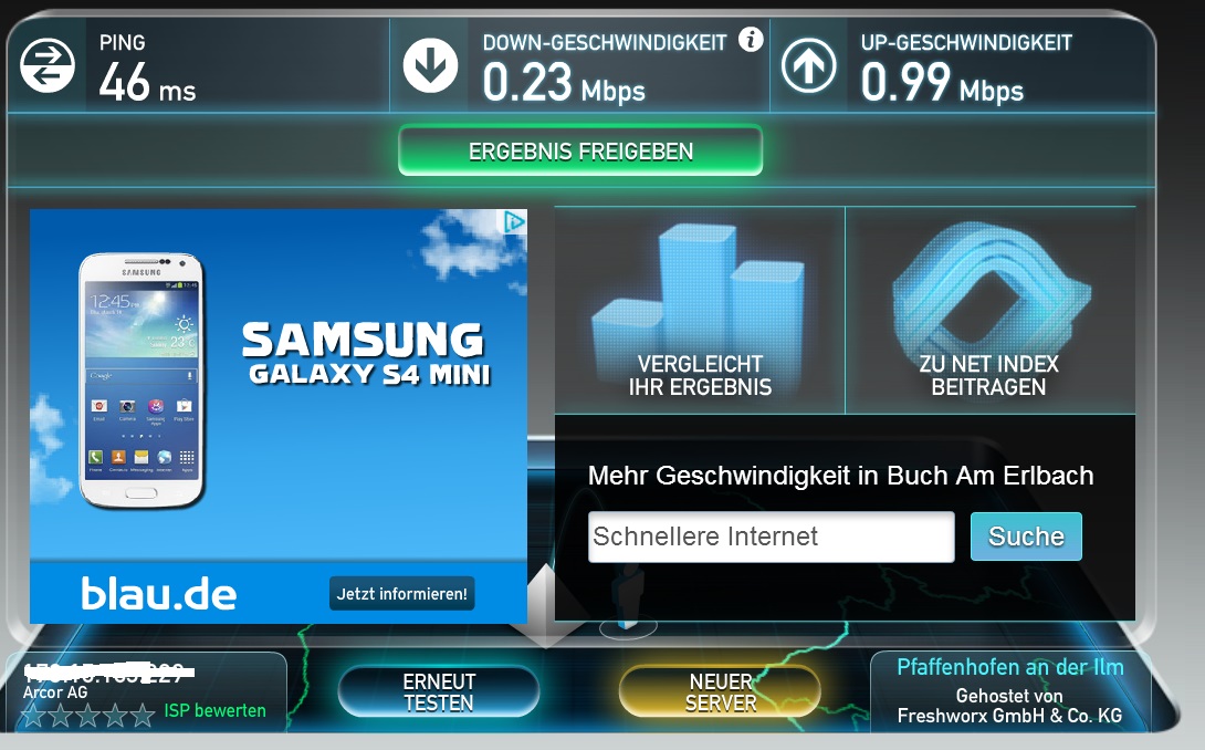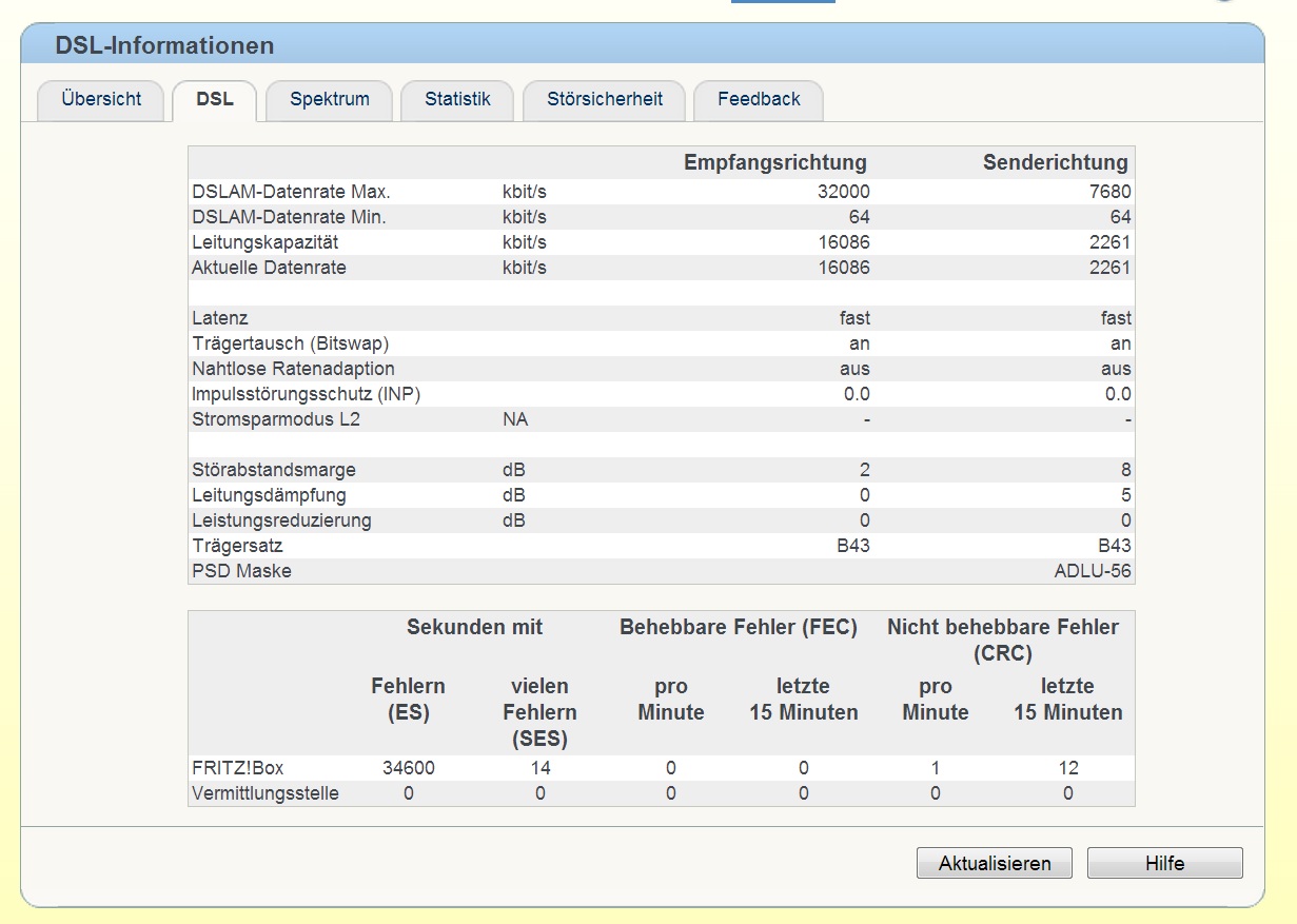 Ich habe eine 16.000er Leitung bei BayernDSL ehemals P2 Systems - was anderes gibts bei uns leider nicht. Die verlegen selbst Glasfaserkabel und das ist so ne Kombi aus Glasfaser und Richtfunk. Jedenfalls habe ich mit dem Laden in regelmäßigen Zeitabständen Probleme in Sachen Downloadgeschwindigkeit. Der Provider versucht es die ganze Zeit auf meinen Router zu schieben (FritzBox 7330) der funktioniert aber einwandfrei und wurde auch schon einmal getauscht. Das Problem äußert sich so das ich erhebliche Einbußen in der Downloadbandbreite habe. Aktuell schon seit 3 Tagen zwischen 1 und 2 Mbit, meistens jedoch auch darunter.